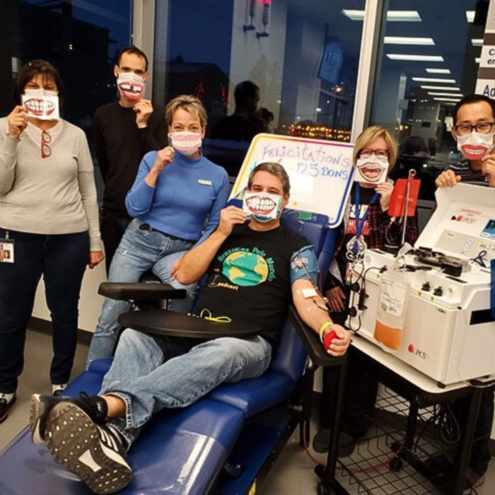 A fotografia que ilustra este texto foi tirada numa doação feita por mim durante o período de confinamento, em 2020. Verbalmente, pedi autorização aos funcionários que aparecem na foto para divulgar o seu trabalho no Héma-Québec. Muito obrigado.